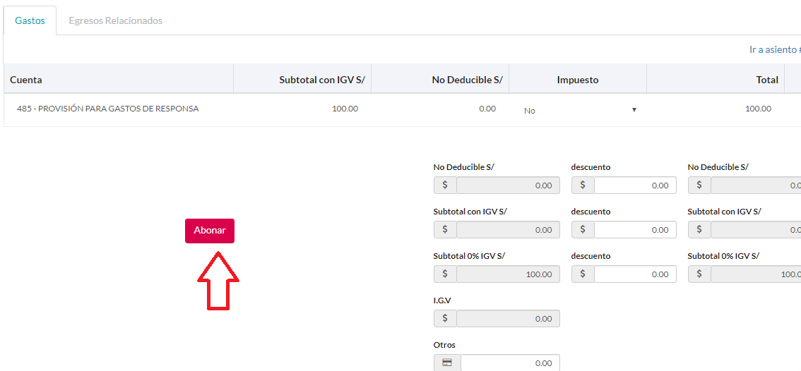 Aquí le aparecen las facturas del mismo proveedor que puede aplicar el abono. Selecciona la factura o facturas para abonar y aplasta el botón de guardar.