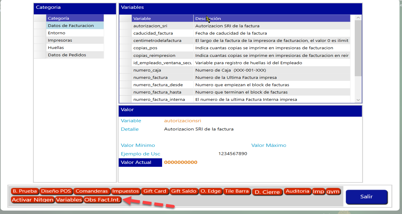 En Obs Fact.Int. se ingresa las diferentes observaciones.