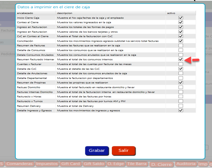 Para la impresion del resumen de las observaciones debe activar el Resumen de Facturado Internamente